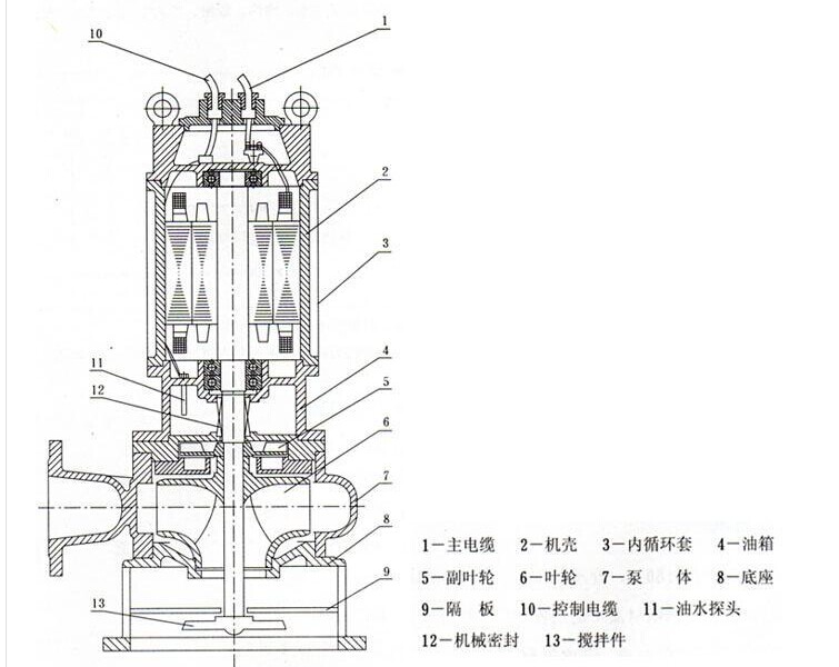 JYWQ自動攪勻無堵塞排污泵結(jié)構(gòu)說明