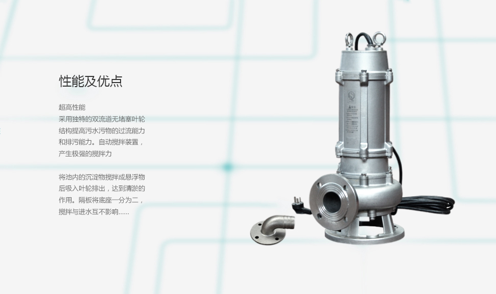 JPWQ不銹鋼攪勻排污泵是在普通型排污泵的基礎(chǔ)上采用自動(dòng)攪拌裝置,該裝置隨電機(jī)軸旋轉(zhuǎn),產(chǎn)生極強(qiáng)的攪拌力,將污水池內(nèi)的沉積物攪拌成懸浮物,吸入泵內(nèi)排出,提高了泵的防堵、排污能力,
