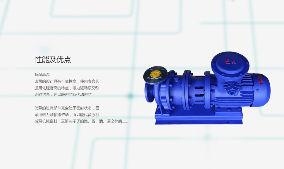 CQB-G 系列磁力泵適用與石油、化工、制藥、冶煉、電鍍、環(huán)保、食品、影視洗印、水處理、國防等行業(yè)。 是輸送高溫類易燃、易爆、揮發(fā)、有毒、稀有貴重液體和各類腐蝕性液體的理想設備。適用與輸送Z大系列工作壓力1.6Mpa,溫度不超過280度,密度不大于1840kg/m3,粘度不大于30cm/s的不含硬顆粒和纖維的液體。