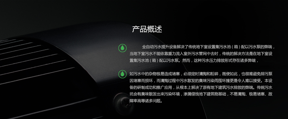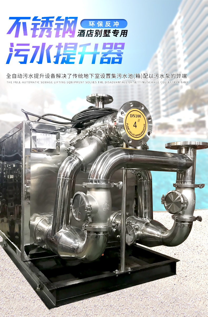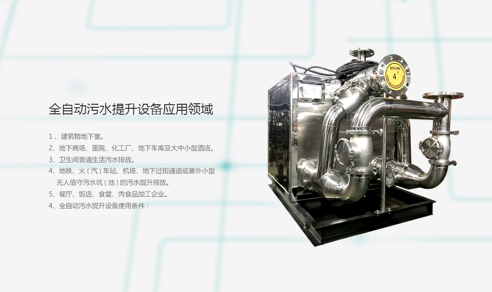 3、采用知名品牌排污泵:石一污水提升器采用安全可靠的優(yōu)質(zhì)排污泵,即可保證排水的順暢,降低了使用和維修成本,打破依賴進(jìn)口絞刀泵進(jìn)行污水提升易纏繞堵塞的弊端;