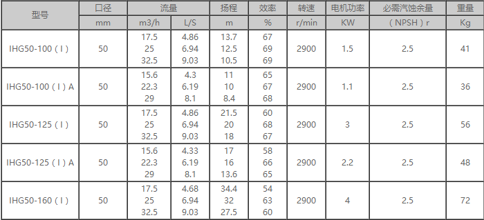 IHG不銹鋼離心泵型號(hào)參數(shù)分析表